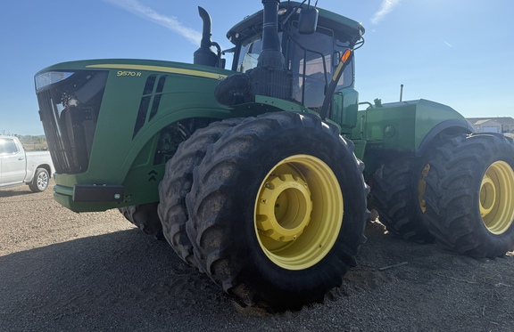 2016 John Deere 9570R, 18/6 PST, 5 SCV, Std Hyd, 710/70R42 Duals, Leather, Premium Lights, Cat 5 HD Drawbar, Rear Hydra Cushion Suspension. Visit our website Stotz Equipment to view our inventory online.